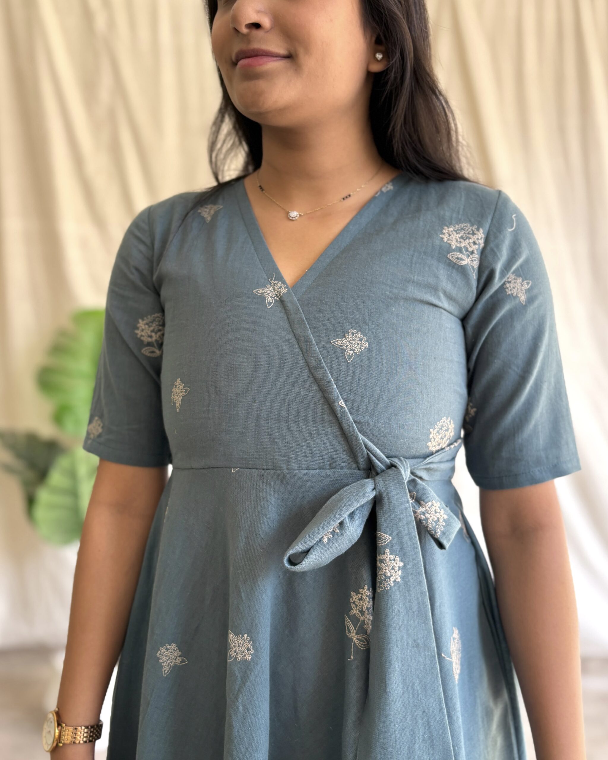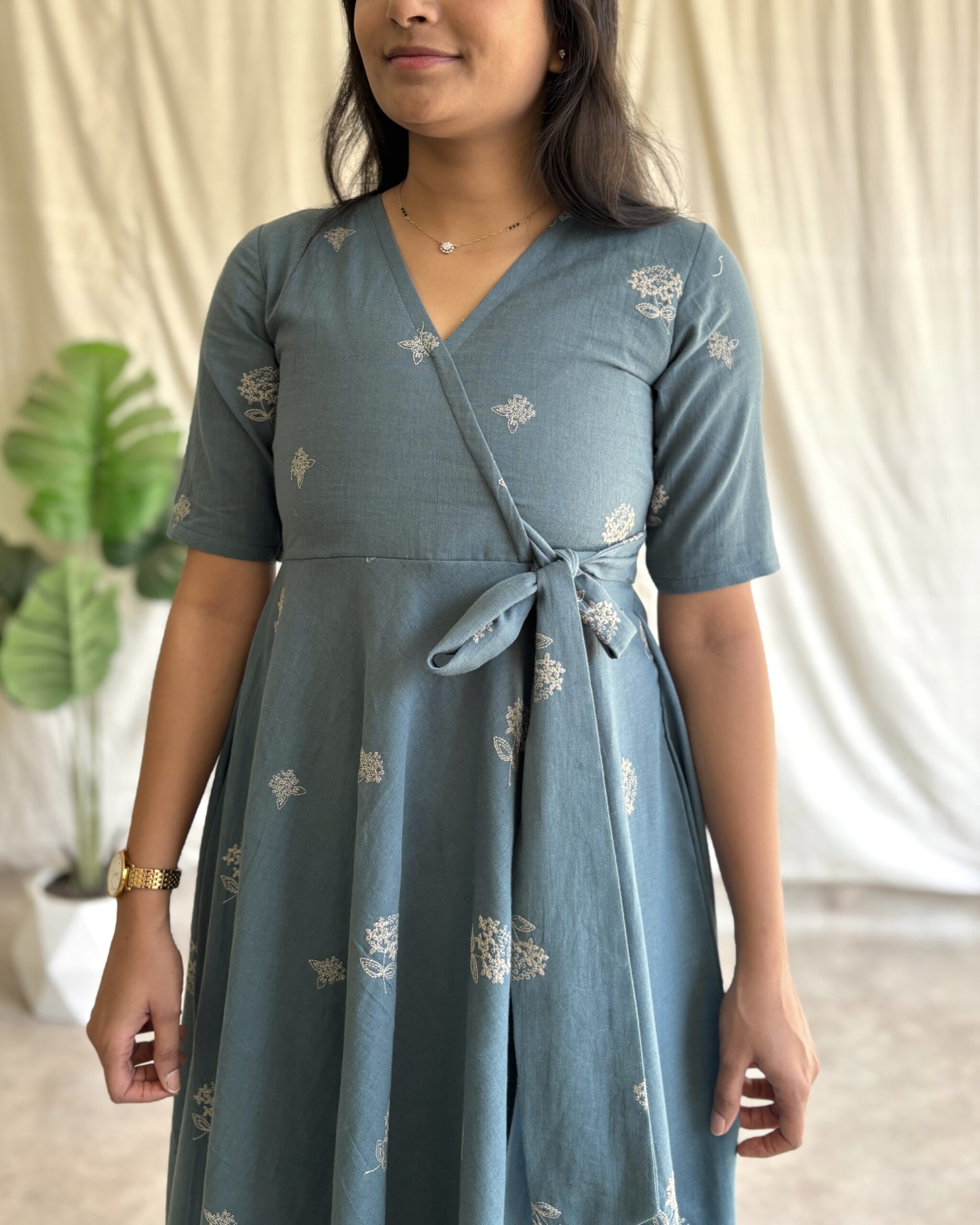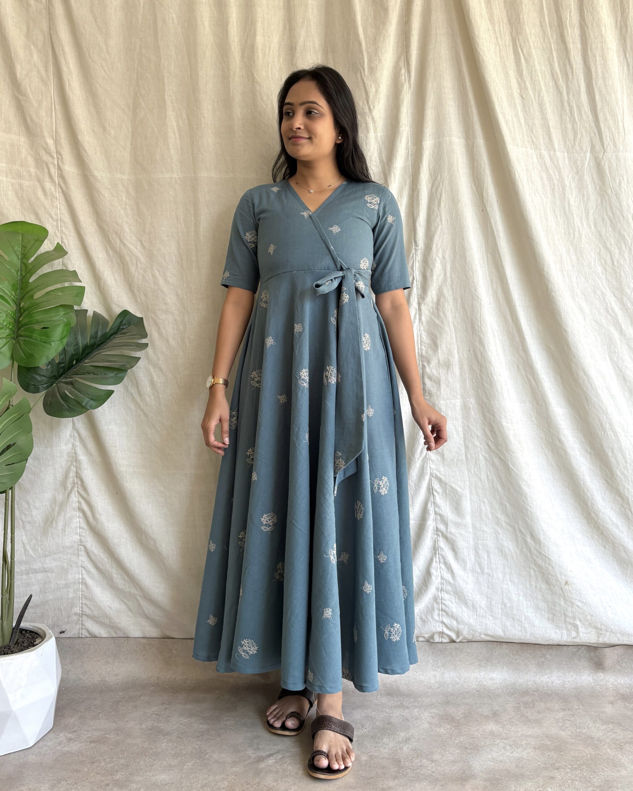 Khadi cotton embroidered cotton maxi dress