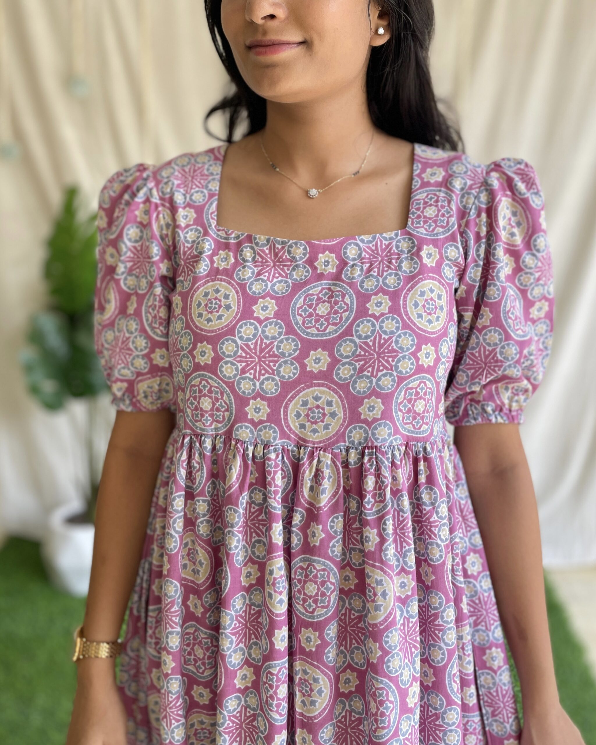 Light pink ajrakh print 2 tiered maxi dress