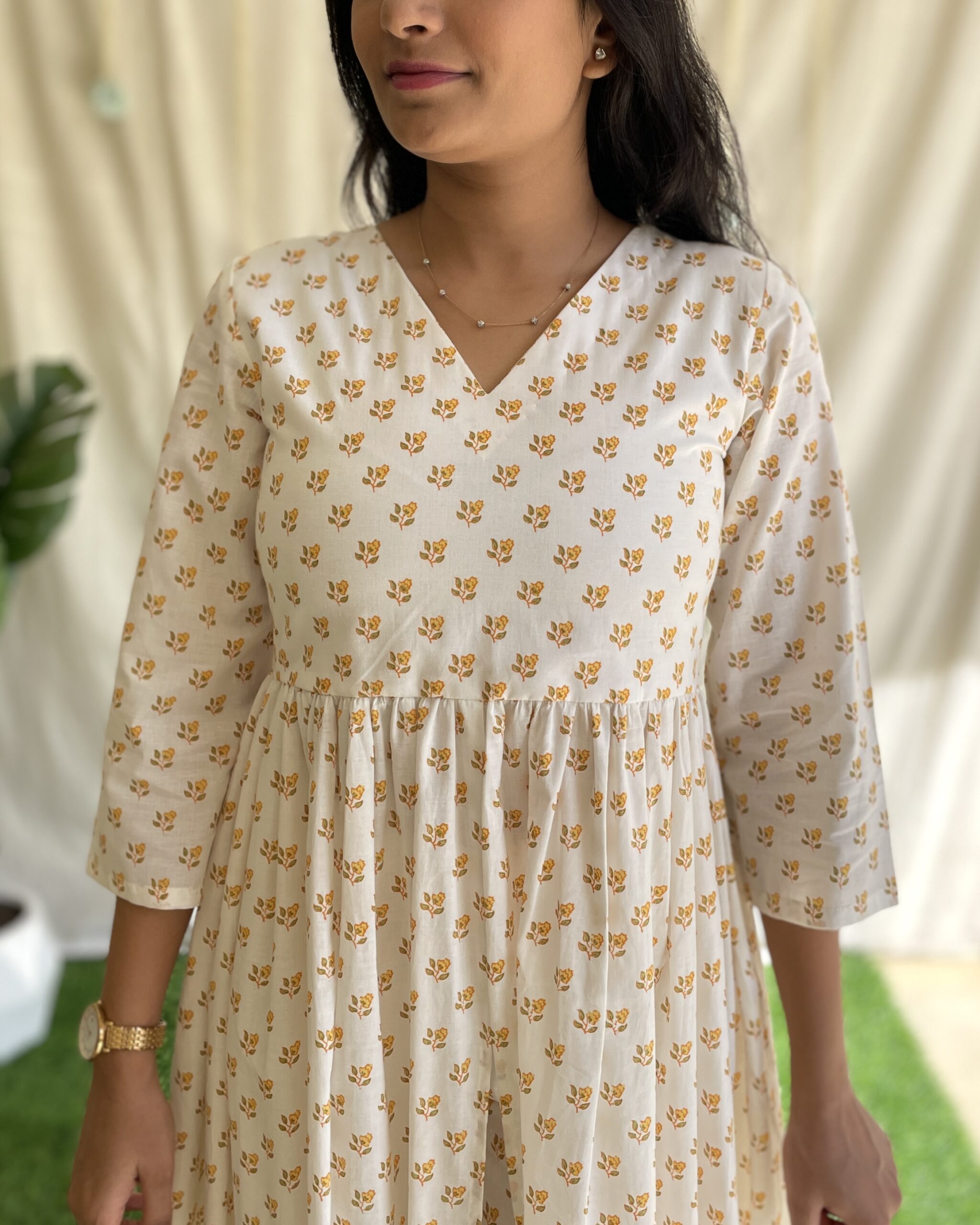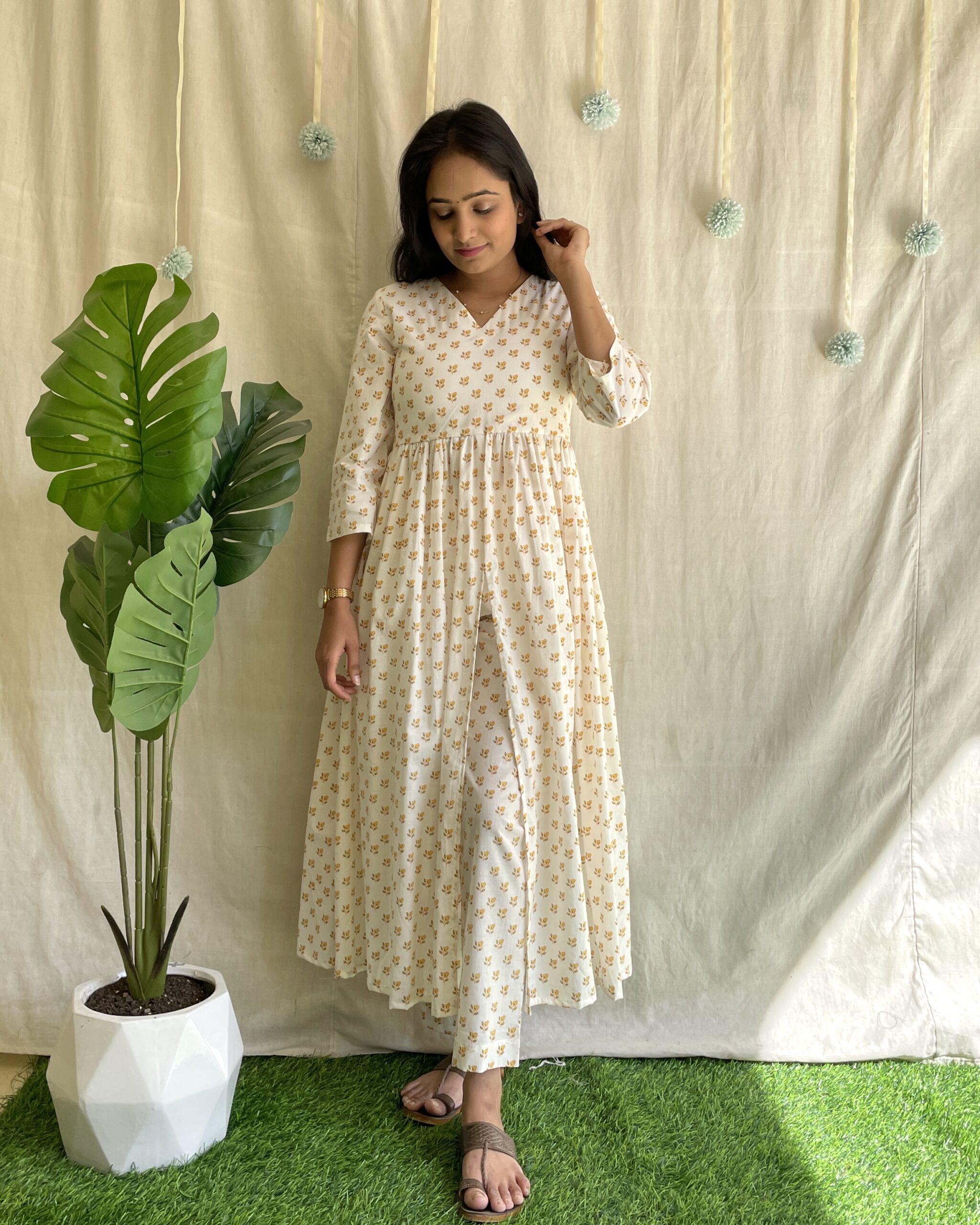 Off white printed cotton kurta set